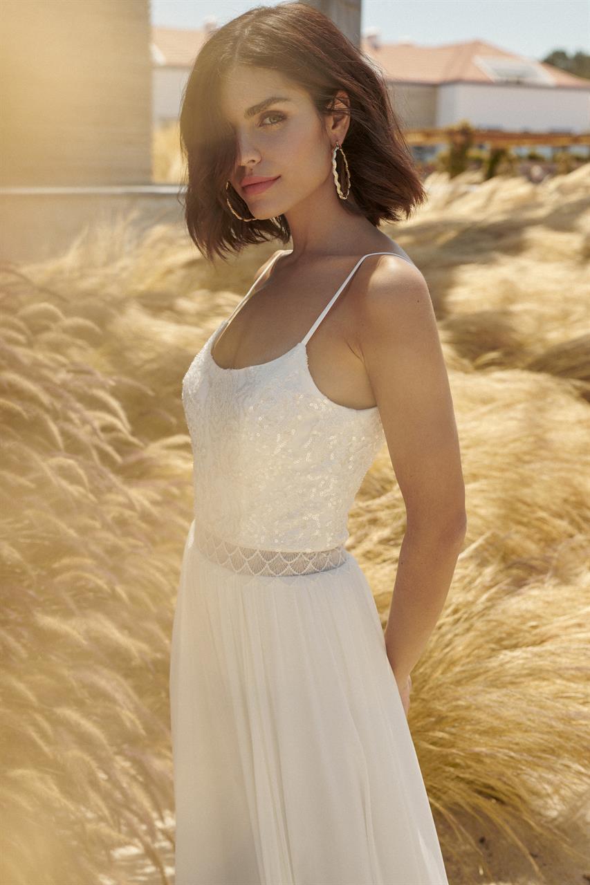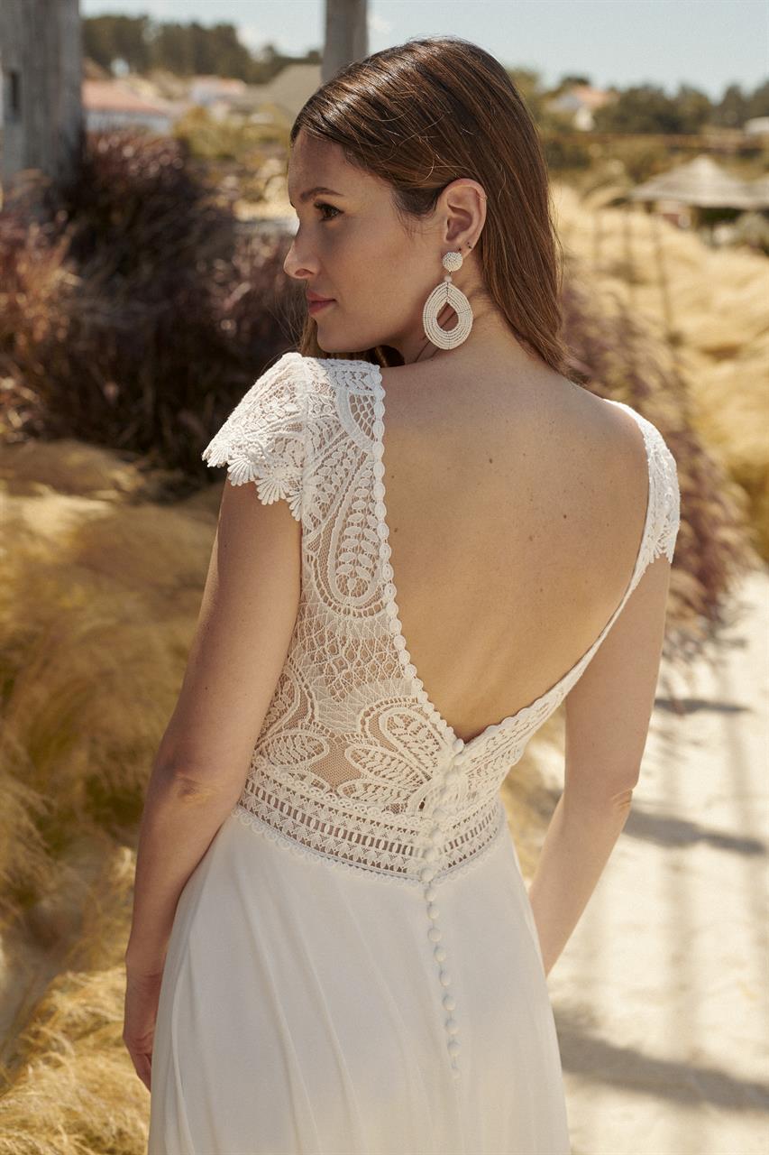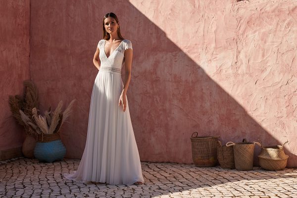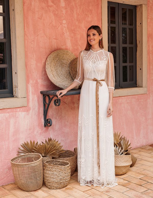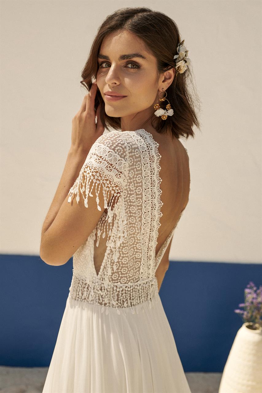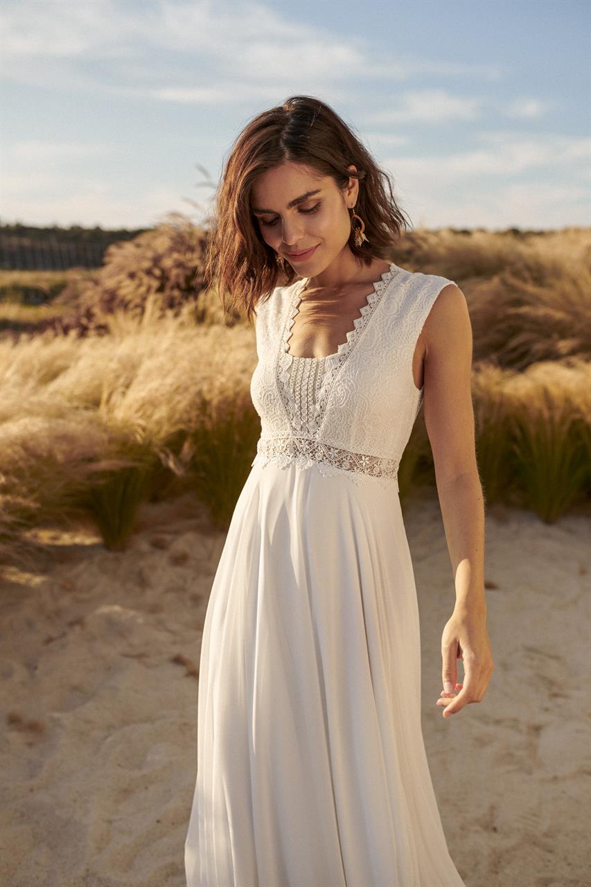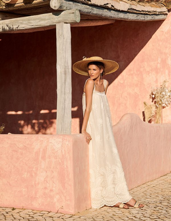 Die leichten Kleider der Kollektion 2024 im Vintage- und Boho-Stil sind aus leichten, fließenden Stoffen und hochwertiger Spitze gefertigt. Bei Nachbestellungen ist es möglich die Modelle direkt auf die eigenen Maße anfertigen zu lassen.